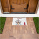 A cute illustration of a Golden Retriever with a house and a red fire hydrant. The background is a bone pattern