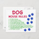 Dog house rules. A funny list of house rules your dog would write if he could. Rules to live by humour. Perfect gifts for any dog lover or dog owner. 1. If I like it, it's mine. 2. If it's in my mouth, it's mine. 3. If I can take it from you, it's mine. 4. If I had it a little while ago, it's mine. 5. If it's mine, it must never appear to be yours in any way. 6. If I'm chewing something up, all the pieces are mine. 7. If it just looks like mine, it's mine. 8. If I saw it first, it's mine. 9. If you are playing with something and you put it down, it automatically becomes mine. 10. If it's broken, it's yours.