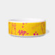 This is a heavy, durable bowl decorated with Tibbies of many colors, the perfect size for hungry/thirsty Tibs. The design is interesting and printing clear.