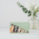 A pet care services business card. Perfect for a dog walker, boarder, dog sitter or doggie day care. On a white background, watercolor images of ten dogs including a great dane, boxer, labrador, beagle, bull dog, pomeranian, beagle, dachshund and terrier, are displayed from big to little. Personalize by adding your business and contact details to the front and back.