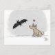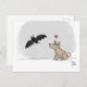 This postcard is a cute one for Halloween or anytime really. The illustration features a dog falling in love with a bat.