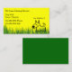 Dog lawn cleanup business cards with colorful fun design that includes a cute dog and text layout you can customize now background color you can change and grass lawn. Best business cards for a dog groomer, dog sitter, walking service, or pet shop and supplies.
