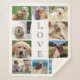 A photo keepsake blanket to celebrate the dogs in your life featuring a 10 photo collage and "LOVE" written down the middle in elegant text.