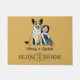 This yellow-dominant doormat features an illustration of a young woman and a happy large breed dog leaning against each other. This is a great gift for a young female who owns a dog or who loves dogs in general.
