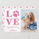 Dog LOVE Valentines Day Custom Pink Pet Photo Holiday Card