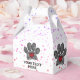 Dog paw print and heart watercolor in red, black and gray. Paint splatter background. Custom favor boxes. Edit text to customize. Dog party decor idea.