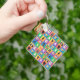 The key chain is made of metal and really sturdy. The flower design is really cheerful. The logo and colors are clear and crisp!