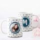 Introducing our Dog Pet Monogram Photo Paw Print Navy Blue Coffee Mug on Zazzle! This charming and customizable design features a navy blue photo frame and monogram on a background adorned with an adorable black and white paw print pattern. Perfect for dog lovers, you can personalize it with your favorite photo, monogram, and name. Make it uniquely yours by easily changing the photo and text to match your style. This design adds a personal touch to your coffee mug, making it an ideal gift for any pet parent.