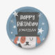 Sweet paper plate for a magic themed birthday party! There is an illustration of a cute puppy with a black hat and wand. Inside the hat, there are texts that says "Happy Birthday." Add your birthday boy's name at the bottom.