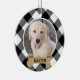Add two photos of your dog on the double-sided keepsake ornament shown featuring a black and white buffalo check plaid background, their photo, name and years on the front and a full-bleed photo with IN LOVING MEMORY and dates on the back. You can edit or delete any text fields and/or change the font style, size, color and placement as desired. (PHOTO TIP: For fastest/best results, choose a photo with the subject in the middle and/or pre-crop your image to a square shape BEFORE uploading and it will fill the photo space perfectly.) Note some ornament styles on the ordering page do not offer back side printing. Contact the designer if you'd like this design modified, on another style ornament or another product.