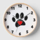 Cute black dog paw print and red heart drawings. Custom decorative wall clocks. All that's seen is printed. no actual stitching will be used in the making. Gift idea for women that love dogs.