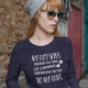 Does your dog keep a funky attitude even though (s)he's SPOILED ROTTEN and unburdened by any real life responsibilities? This women's long sleeve navy tee lets you commiserate your plight with humor by displaying the funny quote: "My dog sighs entirely too much for a roommate contributing nothing to my rent." But hey, you're still a proud dog mom, so use the customization tool to easily personalize the back of the tee with your dramatic doggo's name and uploaded photo. Available in several colors.