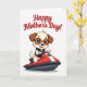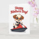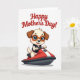 This card shows a cheerful cartoon dog with light fur and deep brown ears, riding a glossy red personal watercraft with white and dark gray details across an open, white background. The dog wears oversized round goggles with orange frames, making its big blue eyes look wide and tender, as if it’s sharing a happy moment with someone watching from shore ❤️. Its open smile shows a tiny pink tongue, adding a friendly, affectionate energy to the scene. The watercraft is angled to feel in motion, with sleek highlights that suggest sunlit shine on the red surface. At the top, the message “Happy Mothers Day!” sits centered in rich red lettering, standing out clearly against the white space. The simple setting keeps all attention on the character, while the bright lighting and crisp outlines give everything a fresh, upbeat look 🌼. The goggles’ orange rims and the watercraft’s red panels are the strongest color accents, with the rest of the page left airy and white. A small dark gray section near the seat and trim adds contrast along the side of the watercraft.