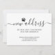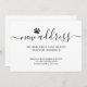This modern dog moving announcement card is decorated with stylish script typography and a dog paw.