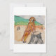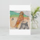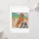 Greeting card with an image of a hand painted dog next to a tree stump on it.