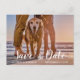 Dog on Beach with Couple Save the Date Announcement Postcard