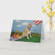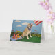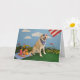 Dog on picnic, American flag Card