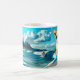 Dog on Surfboard Wearing Sunglasses AI Art Coffee Mug