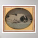 The Bancroft Library Presents: Full length portrait of a dog, laying on a flower print cloth. Portrait by Sheldon Nichols (casemaker) between 1852 and 1853.