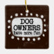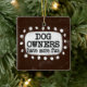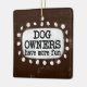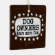 "Dog Owners Have More Fun" is a cute text design in brown with black text, along with a white accent shape and white textured whimsical dots surrounding it.