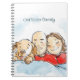 This notebook has an illustration of a cute puppy and its parents, a bald man and a brunette woman. You can customize the text.