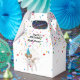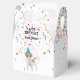 A cute illustration of a dog partying and having fun! Puppy wearing a party hat and blowing party horn with confetti raining down on it. Let the celebrations begin! Perfect for anyone who loves funny animal illustrations. Ideal for a birthday favor box. Customize the occasion and name and make it your own.