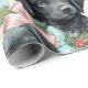 Black Labrador gift wrap for the dog lover's Christmas holiday gift giving - pink and blue bows , holly and pine needle bouquet in a modern pastel color theme - the design is approx 6 inches, so best for larger packages -