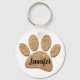 Cute cartoon style dog paw print with burlap texture. Custom keychains. Edit name to customize.