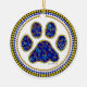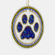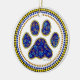 Blue paw print filled with colored stars on a ceramic ornament.
