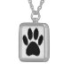 Dog Paw Drawing In Black Silver Plated Necklace