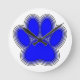 Dog Paw In Blue With Outlines Round Clock