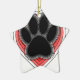 Dog Paw In Red Heart With Outlines Ceramic Ornament