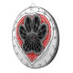 A cartoon style dog paw print in a red heart with outlines in black. Original design for people that love dogs.