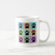 A colorful dog pattern quilt. Stripes and squares in many colors. All digital image. Custom coffee mugs for people that love dogs. Gift idea.