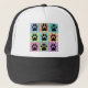 A colorful dog pattern quilt. Stripes and squares in many colors. All digital image. Custom trucker hats for dog lovers. Gift idea.