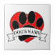 Dog Paw Print And Heart With Custom Name Ceramic Ceramic Tile