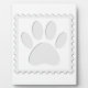 Drawing of dog paw print cut out of a stamp.