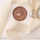 Before the wax hardens, gently and evenly press the wax seal stamp into the melted wax, ensuring it's centered.