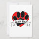 Cute cartoon style dog paw print, red heart and banner. Custom thank you cards.