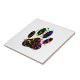 Dog paw print with confetti and party streamer. Custom square ceramic tiles with an original design. Unique gift idea.