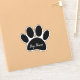 Cartoon dog paw print in black. White background. Faux 3D and drop shadow effects applied to the drawing.