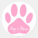 Dog Paw Print With Custom Name Pink Classic Round Sticker