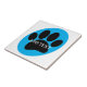 Cartoon dog pawprint in black. White and blue background. Edit text to customize.