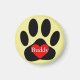 Cartoon dog pawprint in black and red heart on top. Custom name magnets.
