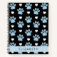Dog Paws, Blue Paws, White Hearts, Your Name Notebook