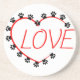 Drawings of dog paw prints, a red heart and the word "love". Original design.