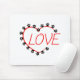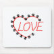 Drawings of dog paw prints, a red heart and the word "love". Original design.