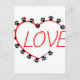 Dog Paws Red Heart Love Postcard