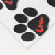 Stay warm with this adorable doggie paw fleece blanket. This blanket would make a perfect gift for a dog lover and dog owner. The design is a pattern of dog paws in black with the word love in red, inside the paw.