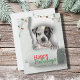 Celebrate the holidays with this cute Christmas card featuring an adorable black and white speckled dog peeking out from a scroll of torn white paper. Set against a clean and simple white backdrop with festive christmas lights in the corners, giving it a splash of color. Perfect for dog lovers and anyone looking to spread holiday joy, this flat card is a delightful way to send your seasonal greetings. Customze the words, font, font color and the back of the card. Share the spirit of the season with family and friends through this whimsical and heartwarming design!